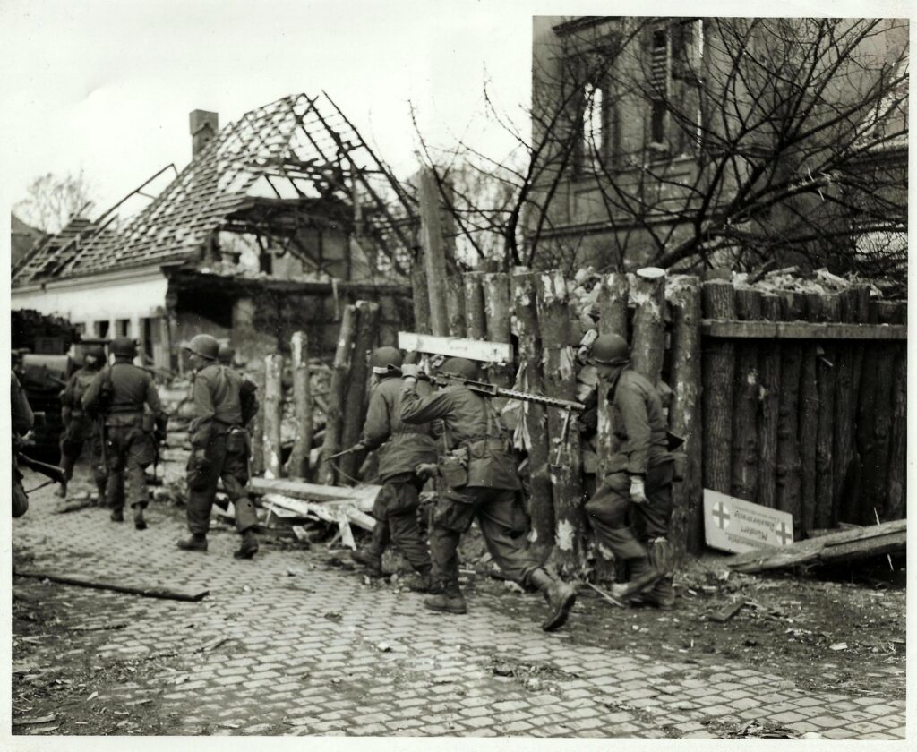 Just before daylight, my company moved up into position and I was sent out as forward observer with the Platoon Leader and Platoon Sergeant. Naturally, I carried the radio. Our artillery began laying down fire and it seemed they would never stop. When they did stop, the Germans opened up with their 88s about time the rifle companies jumped off. Our mortars were laying down