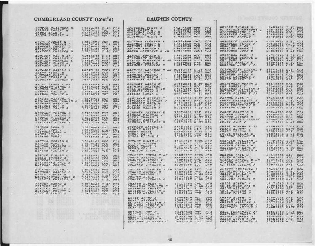 Casualty List Pennsylania